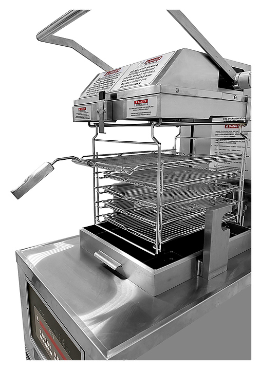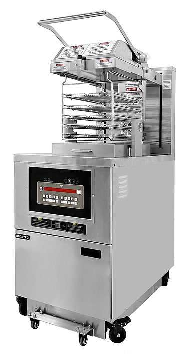 Фритюрница Kocateq PFE591 под давлением предназначена для жарки под давлением различных продуктов в большом количестве масла или жира на предприятиях общественного питания и торговли. Модель оснащена термостатом для регулировки температуры и сточным каналом для конденсата в нижней части крышки для предотвращения попадания конденсата в горячее масло при открывании крышки. Жарочная емкость выполнена из нержавеющей стали, крышка - из литого сплава алюминия. Особенности: