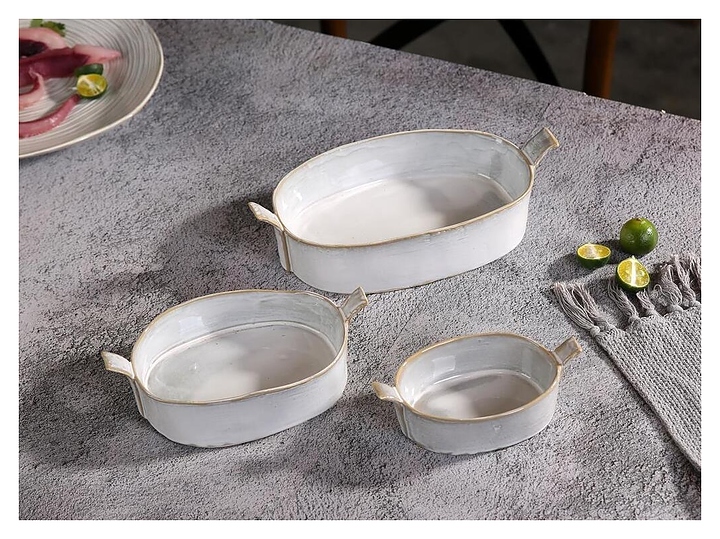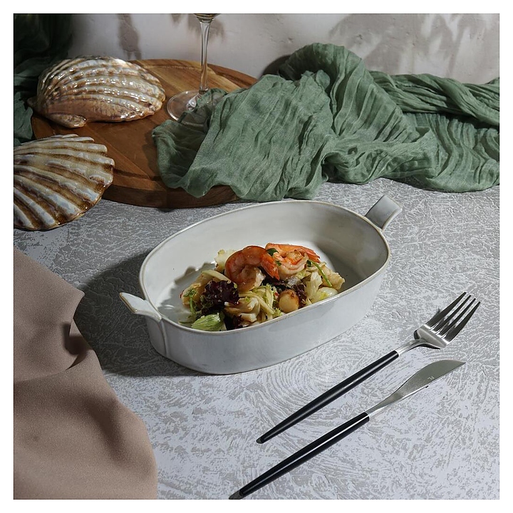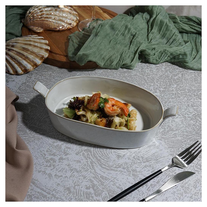 Блюдо сервировочное P.L. Proff Cuisine Gray Oval Bucket Frutti di Mare QB23165005 700 мл 25,5х13,5 см h=5 смс ручками (керамика)