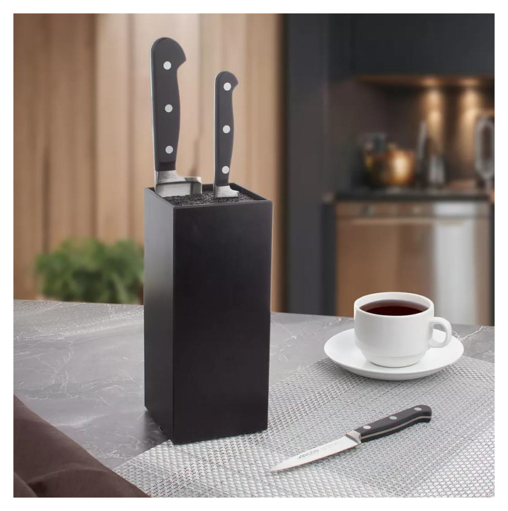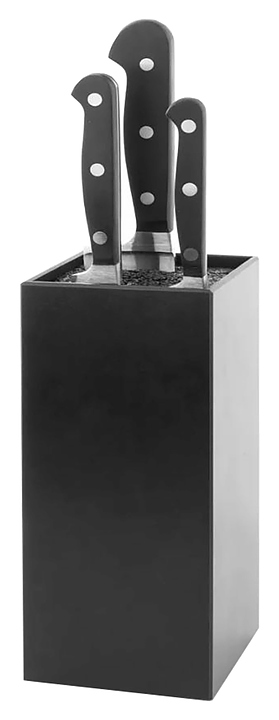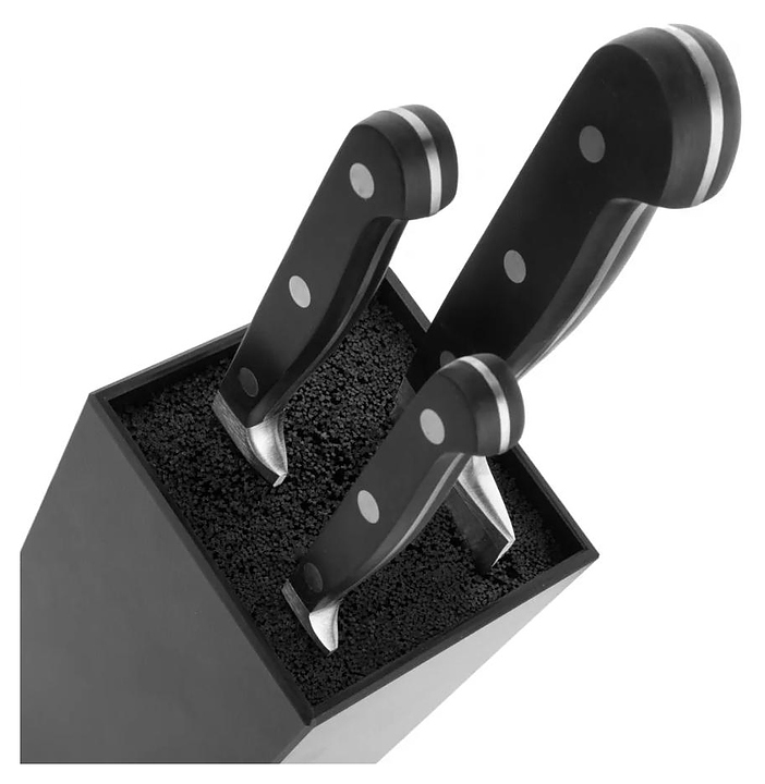 Набор ножей Arcos Clasica AR251015 предназначен для нарезки и разделки различных продуктов на предприятиях общественного питания и торговли. Рукоятки изготовлены из полиоксиметилена, который отличается износостойкостью, устойчивостью к воздействию разницы температур, пластичностью, прочностью и отсутствием взаимодействия с влагой, кислотными или щелочными растворами. Клинки выполнены из стального сплава NITRUM, устойчивого к коррозии и долговечного, длительно сохраняющего остроту режущей кромки и первоначальный внешний вид во время всего периода эксплуатации. Подставка изготовлена из бумажно-слоистого композитного материала. Комплектация: