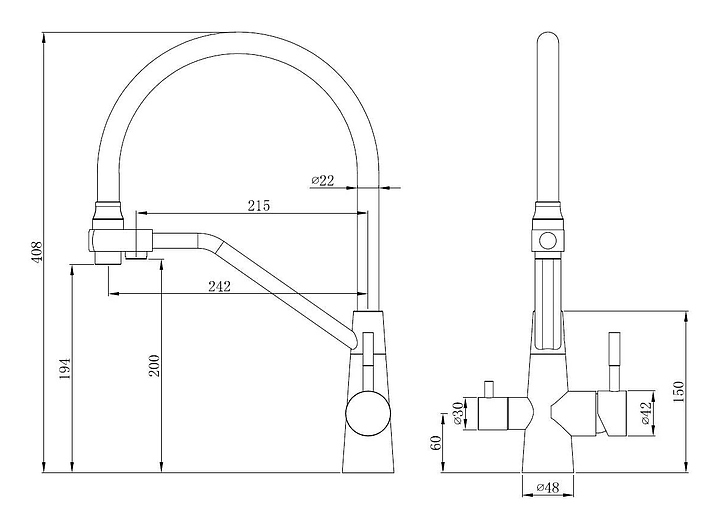 Смеситель ESKO K25 W предназначен для подачи горячей и холодной воды в кухонных помещениях. Модель оснащена подключением к фильтру и керамическим картриджем, обеспечивающим плавный ход рычага смесителя, контроль и точность при выборе напора и температуры воды. Вертикальное расположение рычага позволяет не задевать ручкой за стеновые панели, фартук и предметы, которые находятся за смесителем. Корпус выполнен из пищевой нержавеющей стали SUS 304, отличающейся прочностью, долговечностью и устойчивостью к коррозии, держатель - из металла. В комплект поставки входят крепление FastFix, гибкая подводка и шланг подключения к фильтру. Особенности: