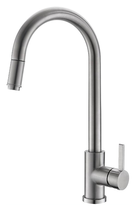 Смеситель VODA Vessel VSL519 предназначен для подачи горячей и холодной воды в кухонных помещениях. Модель оснащена вытяжным R-изливом и универсальным керамическим картриджем, обеспечивающим плавный ход рычага смесителя, контроль и точность при выборе напора и температуры воды. Изделие выполнено из пищевой нержавеющей стали SUS 304, отличающейся прочностью, долговечностью и устойчивостью к коррозии. В комплект поставки входят гибкая подводка и груз-утяжелитель для вытяжного шланга. Дополнительные характеристики: