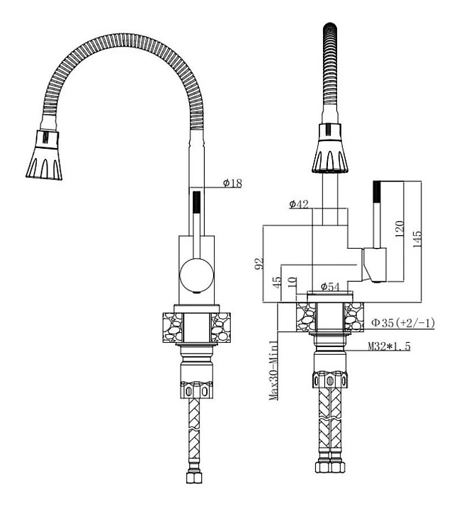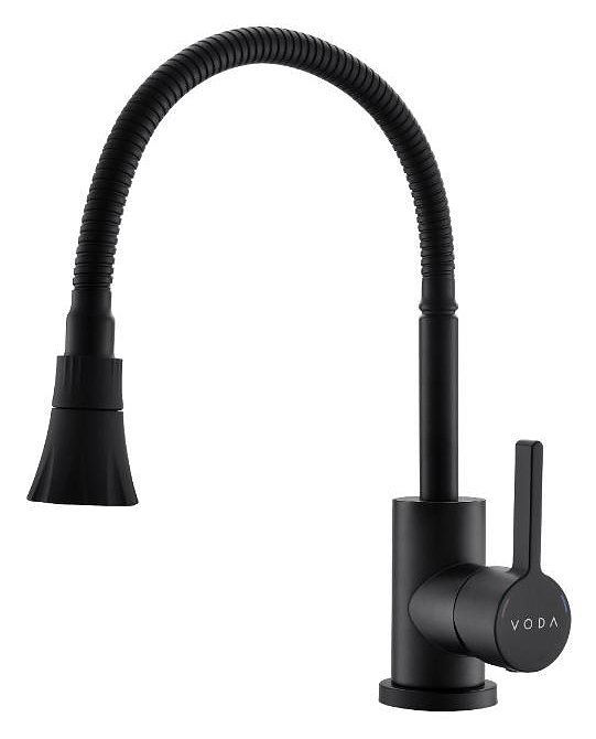 Смеситель VODA KF 36B предназначен для подачи горячей и холодной воды в кухонных помещениях. Модель оснащена гибким изливом с режимом душ и керамическим картриджем, обеспечивающим плавный ход рычага смесителя, контроль и точность при выборе напора и температуры воды. Корпус выполнен из нержавеющей стали SUS 304. В комплект поставки входят крепеж и гибкая подводка. Дополнительные характеристики: