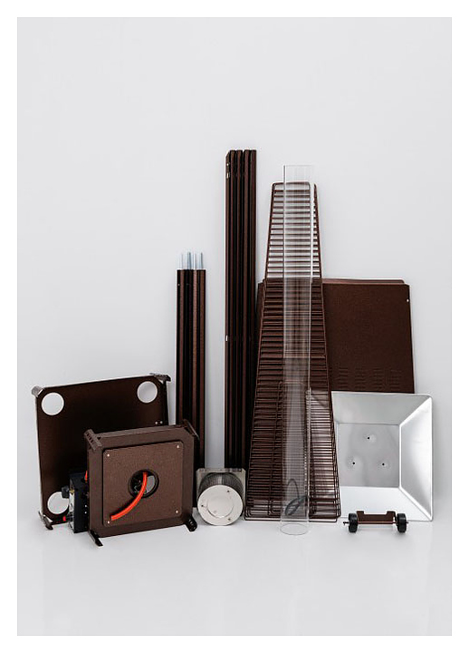 Уличный обогреватель Stalleh Pyramid x4 Hörn Bronse предназначен для обогрева и поддержания комфортного микроклимата на открытых площадках кафе и ресторанов, в зонах отдыха пансионатов и санаториев. Модель оснащена рефлектором, редуктором итальянского производства, электро-пьезоподжигом и датчиком контроля наличия пламени. Колба выполнена из прочного закаленного стекла, корпус - из высокотехнологичной стали с порошковым покрытием, рефлектор - из цельного куска алюминия. В комплект поставки входит чехол. Особенности: