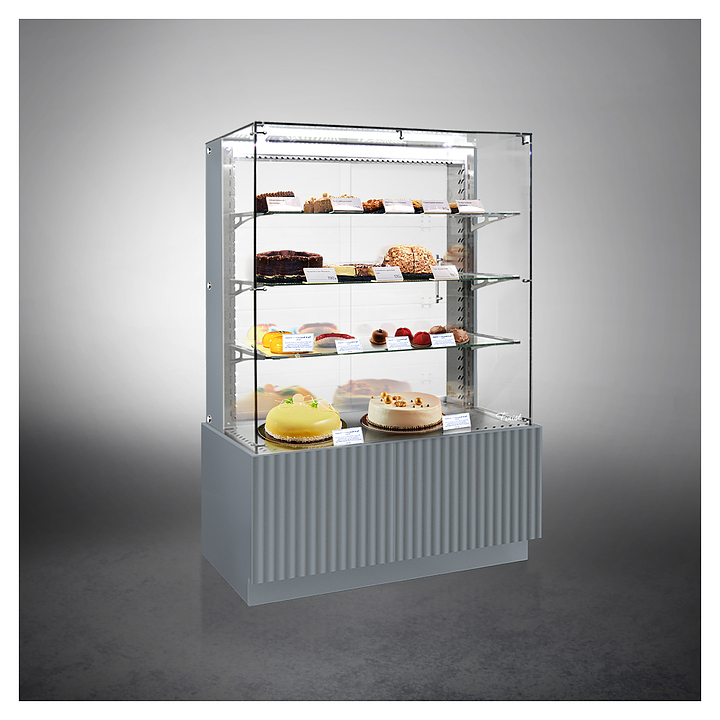 Напольная кондитерская витрина Finist AIR LUX AL-15-7-163 предназначена для кратковременного хранения и предпродажной демонстрации десертов и кондитерских изделий на предприятиях общественного питания и торговли. Модель оснащена раздвижными дверьми-купе, 3 полками и подсветкой. Фасады выполнены из МДФ, полки - из стекла, дно витрины - из зеркальной нержавеющей стали. Особенности: