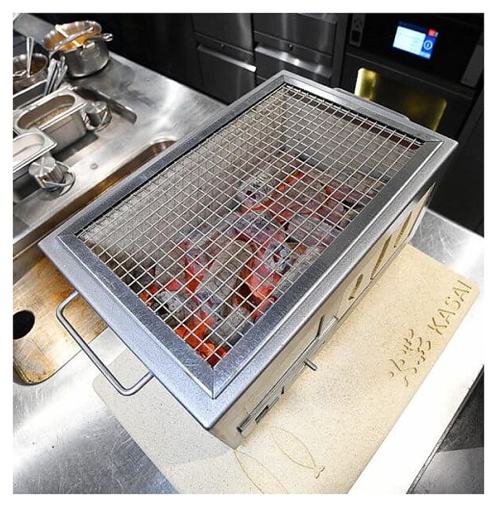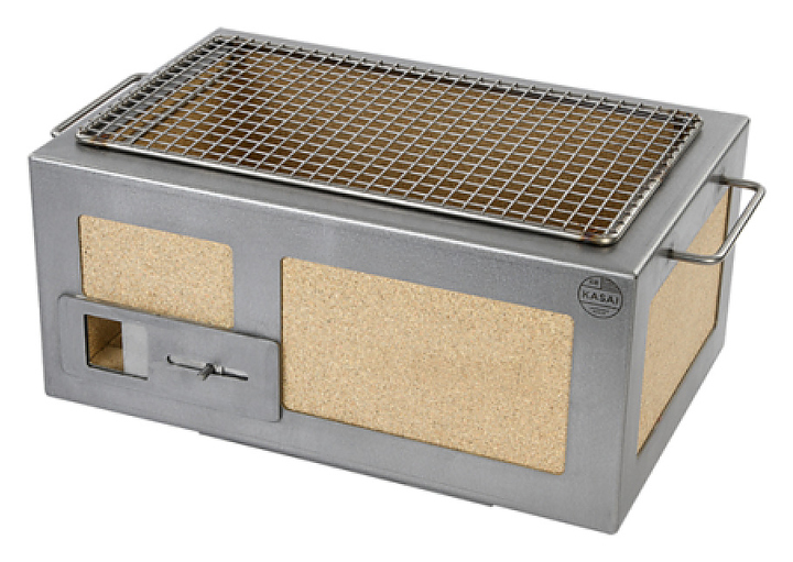 Японский гриль Kasai Little Konro предназначен для приготовления блюд на древесном угле в частных домах и на предприятиях общественного питания. Рама, ручки и решетка выполнены из нержавеющей стали V2, корпус - из огнеупорной керамики. В комплект поставки входит решетка для приготовления. Особенности: