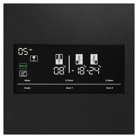 • Цифровая индикация температуры во всех камерах в градусах Цельсия или Фаренгейта, оставшегося до завершения времени функции QDrink
