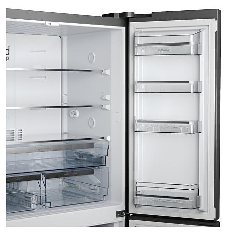 • 8 навесныех дверных полок, включая 2 верхние с крышками и 2 нижние с ограничителями бортами для бутылок