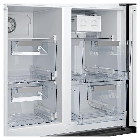 Холодильник Kuppersberg NMFV 18591 B Silver предназначен для охлаждения, замораживания, кратковременного и длительного хранения пищевых продуктов и напитков в гостиничных комплексах, офисах, а также домашних условиях. Модель оснащена холодильной камерой сверху, 2 морозильными камерами снизу, механическим льдогенератором, 4 распашными дверьми с вертикальными трубчатыми рукоятками, кабелем питания с вилкой, сенсорной панелью управления и 4 светодиодными цифровыми дисплеями с белой подсветкой индикации. Корпус выполнен из металла с антикоррозийным покрытием черного цвета, внутренняя облицовка камер – из антибактериального пластика, плоские полки – из закаленного стекла, навесные полки и ящики – из прозрачного пластика, ящики и полки декорированы окантовками серебристого оттенка, рукоятки серебристого оттенка.