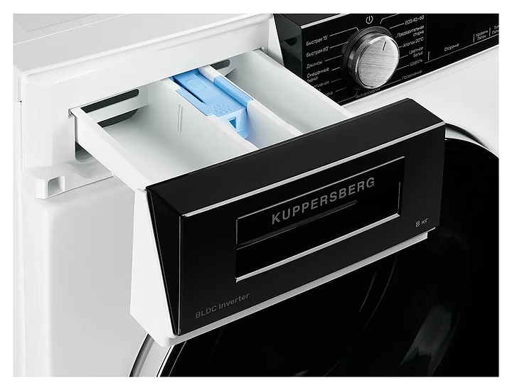 Автоматическая стиральная машина Kuppersberg WM 520 Wиспользуется в домашних условиях, гостиницах, а также небольших прачечных для стирки, полоскания и отжима белья, одежды и тканей. Модель оснащена фронтальным люком, дверью со смотровым окном и интегрированной рукояткой, съемным контейнером для моющих средств с 3 отсеками, сливным шлангом, кабелем питания с вилкой, электромеханической панелью управления с поворотным переключателем, функциональными сенсорными клавишами, сигнальными лампами и светодиодным цифровым дисплеем с белой подсветкой индикации. Корпус выполнен из металла с антикоррозийным покрытием белого цвета, внешняя крышка двери люка с полупрозрачной дымчатой тонировкой и окантовкой серебристого оттенка, барабан – из высококачественной нержавеющей стали, панель управления черного цвета, переключатель серебристого оттенка.