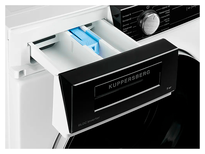 Автоматическая стиральная машина Kuppersberg WM 490 W используется в домашних условиях, гостиницах, а также небольших прачечных для стирки, полоскания и отжима белья, одежды и тканей. Модель оснащена фронтальным люком, дверью со смотровым окном и интегрированной рукояткой, съемным контейнером для моющих средств с 3 отсеками, сливным шлангом, кабелем питания с вилкой, электромеханической панелью управления с поворотным переключателем, функциональными сенсорными клавишами, сигнальными лампами и светодиодным цифровым дисплеем с белой подсветкой индикации. Корпус выполнен из металла с антикоррозийным покрытием белого цвета, внешняя крышка двери люка с полупрозрачной дымчатой тонировкой и окантовкой серебристого оттенка, барабан – из высококачественной нержавеющей стали, панель управления черного цвета, переключатель серебристого оттенка. Стиральная машина может устанавливаться в колонну с сушильной машиной DM 560 W. В комплект поставки входят транспортировочные болты, инструкция по эксплуатации и гарантийный талон. Особенности: