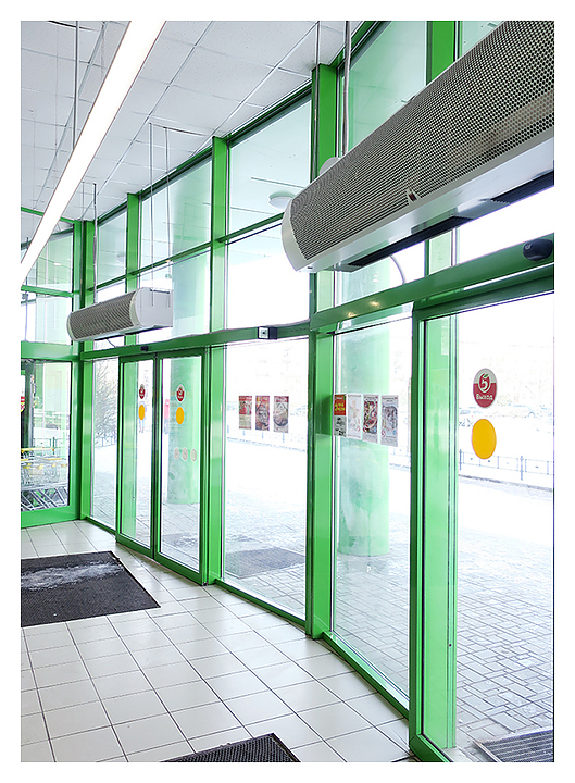 Воздушная завеса Тепломаш КЭВ-П4111A серии 400 Комфорт предназначена для защиты от внешнего притока холодного или теплого воздуха, пыли, насекомых и неприятных запахов путем установки в дверных проемах жилых, торговых и административных помещений, гостиниц, медицинских и общеобразовательных учреждений. Модель оснащена 2 блоками диаметральных (тангенциальных) вентиляторов с электродвигателем, воздухозаборной и воздуховыпускной решетками. Корпус выполнен из оцинкованной стали с антикоррозийным покрытием порошковой краской светло-серого оттенка (RAL 7004), фронтальная панель корпуса белого цвета (RAL 9003) с мелкоячеистой перфорацией, корпусы пульта и выносной панели – из ударопрочного белого пластика. Комплектация:
