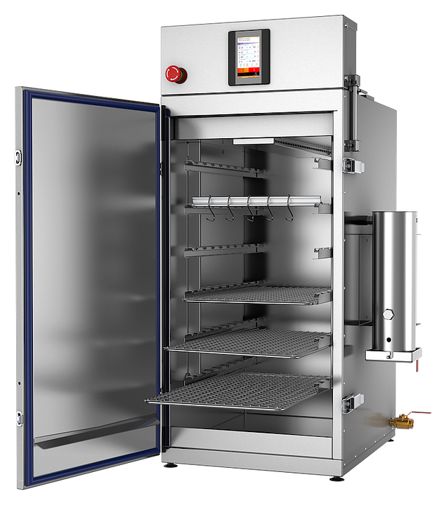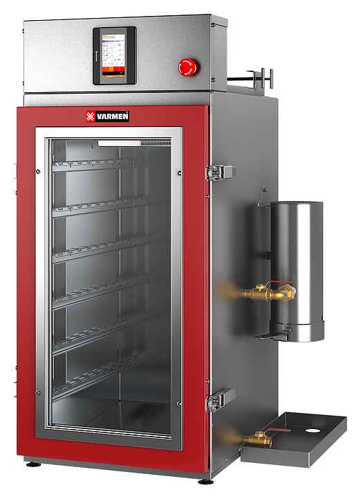 Универсальная термокамера Ижица Varmen Mini предназначена для термической и дымовой обработки мяса, рыбы, птицы, сала и сыра в небольших коптильных цехах, в фермерских хозяйствах, на предприятиях общественного питания и торговли. Модель оснащена щеповым дымогенератором из нержавеющей стали, сенсорной панелью управления и смотровым окном. Внутренний объем камеры выполнен из нержавеющей стали, петли и запорные механизмы - из нержавеющей стали с большим запасом прочности, уплотнение двери - из термостойкого силикона, теплоизоляция камеры - из жесткой минеральной ваты с пропиткой от слеживания. В комплект поставки входят комплект вешал (12 шт.) и комплект крючков (24 шт.). Особенности: