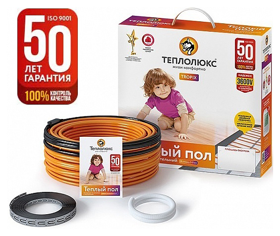 Нагревательный кабель Теплолюкс Tropix ТЛБЭ предназначен для создания теплого пола, применяемого для дополнительного или полного обогрева любого помещения - балкона, коридора, кухни, санузла, жилой комнаты, квартиры или загородного дома. В комплект поставки входят гофрированная трубка с заглушкой для датчика температуры и монтажная лента. Особенности: