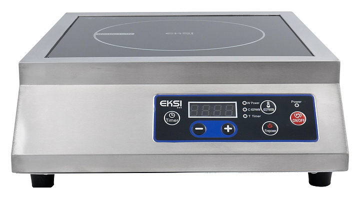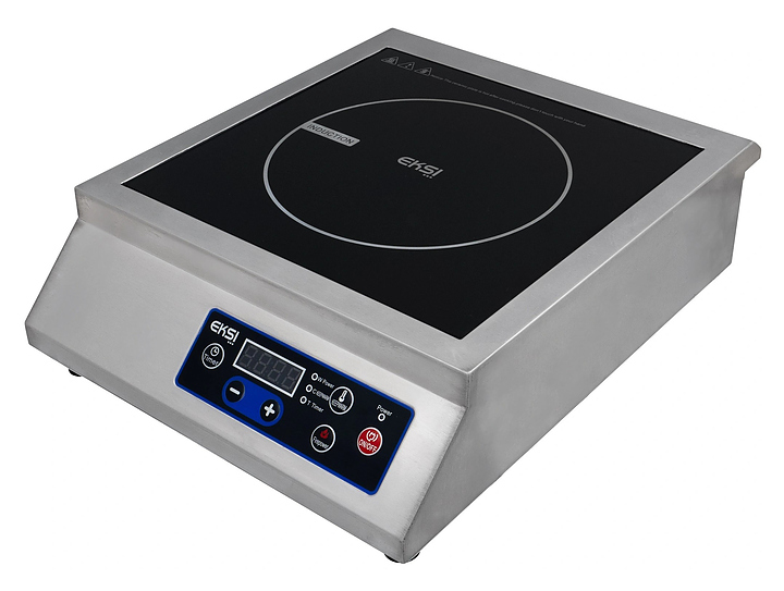Индукционная плита EKSI Q3 Flat предназначена для приготовления широкого спектра блюд на предприятиях общественного питания и торговли. Принцип работы плиты основан на использовании индуцированных вихревых токов, создаваемых высокочастотным магнитным полем, которые и подогревают посуду с продуктами. Модель оснащена электронным дисплеем. Рекомендуется использовать специальную посуду из материала с подходящими характеристиками, который бы эффективно поглощал энергию магнитного поля. Особенности: