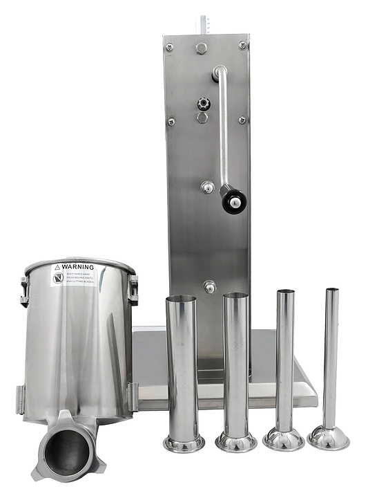 Колбасный шприц EKSI GRT-VSS7 используется на предприятиях пищевой промышленности при производстве колбасных изделий и аналогичных продуктов для наполнения начинкой подготовленных оболочек. Модель оснащена механическим приводом. Вертикально ориентированный корпус выполнен из нержавеющей стали. В комплект поставки входят 4 насадки различного диаметра. Дополнительные характеристики: