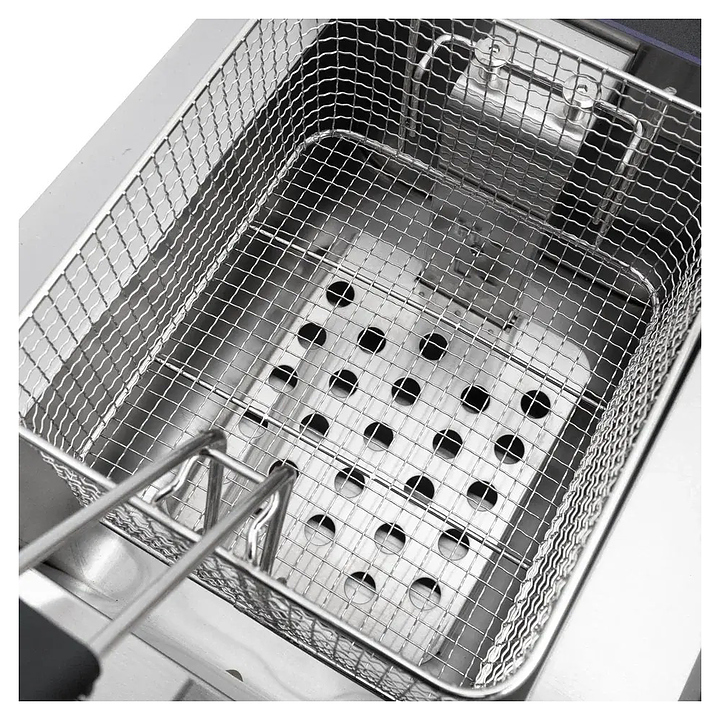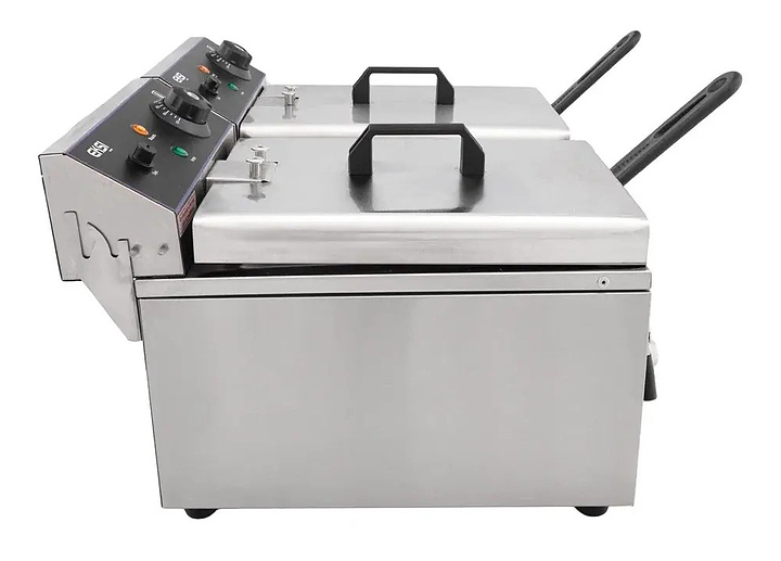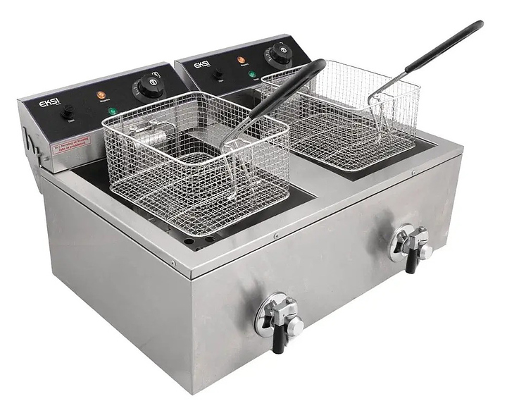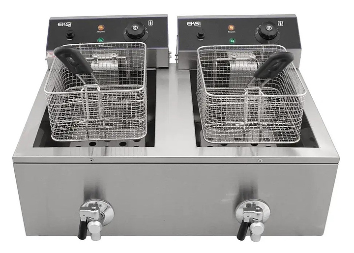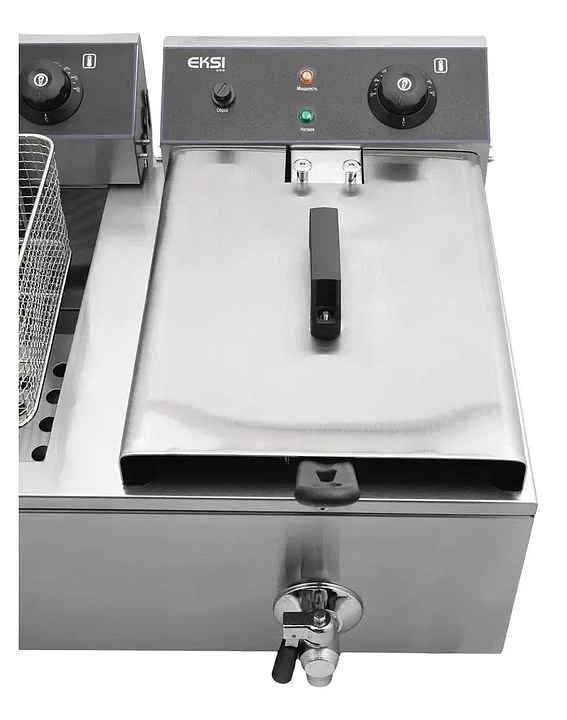 Электрическая фритюрница EKSI GRT-E20L используется на предприятиях общественного питания и торговли для приготовления картофеля-фри и других блюд путем обжарки в большом количестве масла. Модель оснащена 2 ваннами, устойчивыми нескользящими опорами и расположенной в тыльной части наклонной электромеханической панелью управления. Корпус, ванны и корзины выполнены из нержавеющей стали. В комплект поставки входят 2 решетчатые корзины. Особенности:
