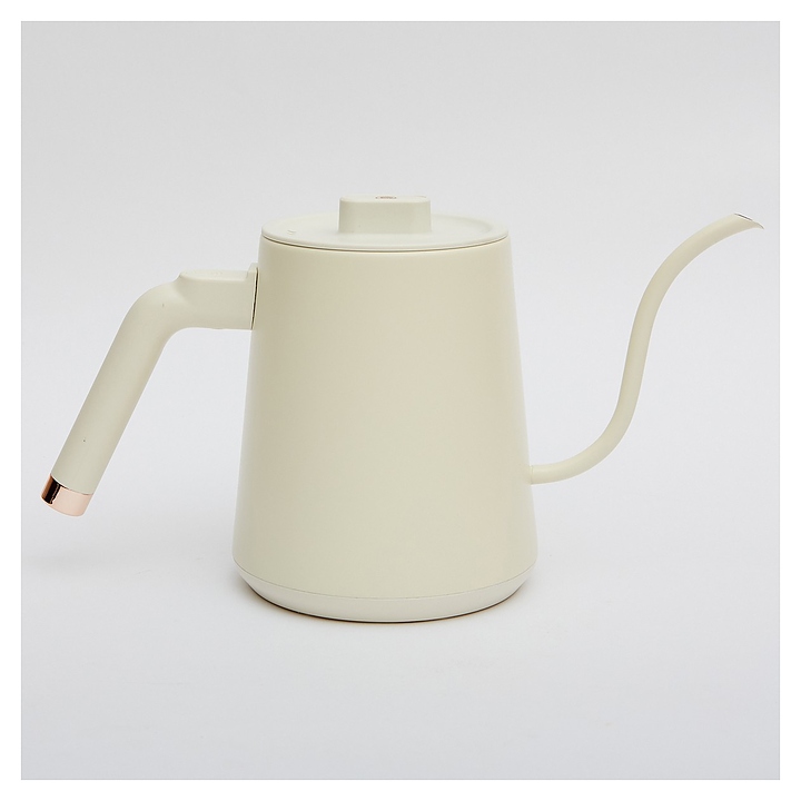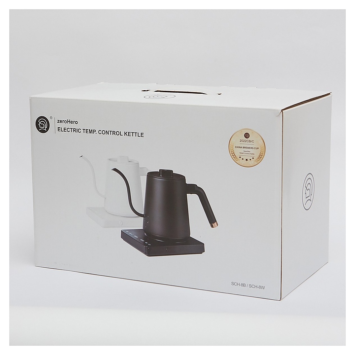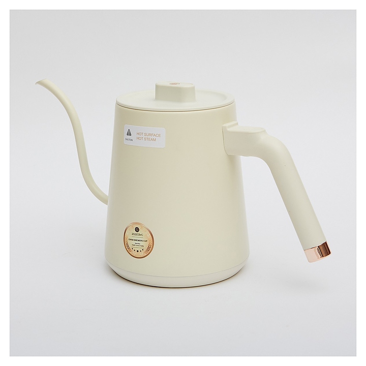 Электрический чайник ZeroHero 600 мл предназначен для заваривания кофе методом пуровер в кофейнях, отелях, офисах и домашних условиях. Модель оснащена тонким изящным носиком, удобной рукояткой, крышкой с 3 паровыми отверстиями, прямоугольной подставкой с функциональной нажимной клавишей на торце, сенсорной панелью управления и 2 цифровыми дисплеями с белой подсветкой индикации. Корпус выполнен из безопасной для пищевой промышленности нержавеющей стали марки SUS304 с белым матовым тефлоновым покрытием, рукоятка – из термостойкого пластика с золотистым наконечником. Особенности: