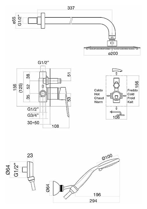 Встраиваемая душевая система Fiore Kevon Black Matt 81NN7557 предназначена для использования в ванных помещениях для подачи горячей и холодной воды. Модель оснащена круглым верхним тропическим душем, круглым трехрежимным ручным душем, душевым шлангом с защитой от перекручивания, девиатором, а также керамическим картриджем, обеспечивающим плавный ход рычага смесителя, контроль и точность при выборе напора и температуры воды. Изделие выполнено из латуни, отличающейся прочностью, долговечностью и устойчивостью к перепадам температур, шланг - из PVC. В комплект поставки входят верхний душ, держатель душевой лейки, ручной душ, смеситель, шланг. Особенности: