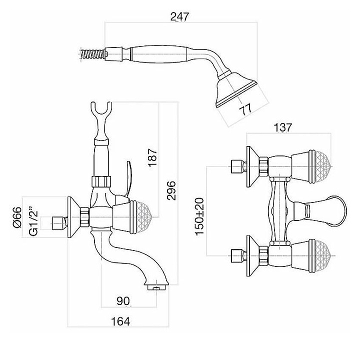 Смеситель для ванны и душа настенный Fiore XT Sky (SWAROVSKI®) 17OO0600 золото