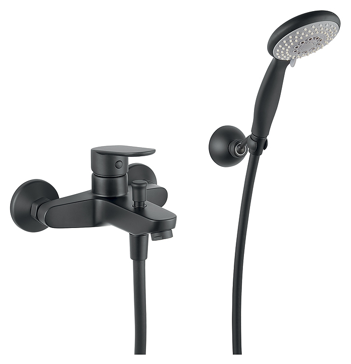 Смеситель Fiore Kevon Black Matt 81NN8150 используется для подачи и смешивания горячей и холодной воды в ванных комнатах. Модель оснащена душевым гарнитуром, включающим в себя однорежимный ручной душ и шланг с защитой от перекручивания, а также керамическим картриджем, обеспечивающим плавный ход рычага смесителя, контроль и точность при выборе напора и температуры воды. Однорычажный тип управления позволяет очень быстро и плавно регулировать подачу воды одной рукой. Изделие выполнено из высококачественной латуни, которая отличается прочностью, долговечностью и устойчивостью к перепадам температур. В комплект поставки входят смеситель, душевая лейка, настенный держатель лейки и шланг. Особенности: