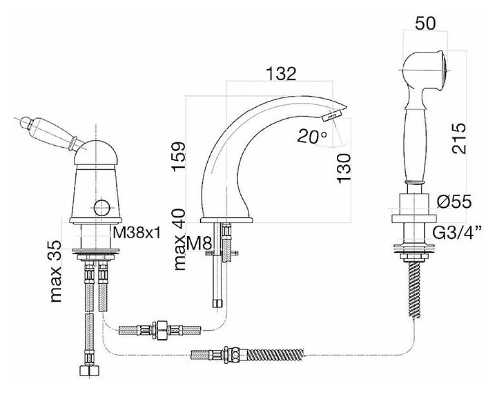 Смеситель на борт ванны Fiore Imperial 83ZZ5105 бронза