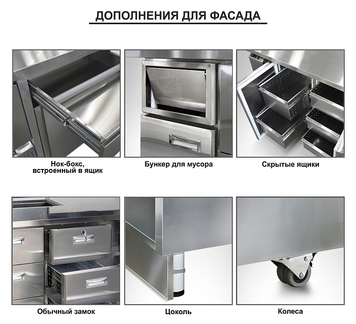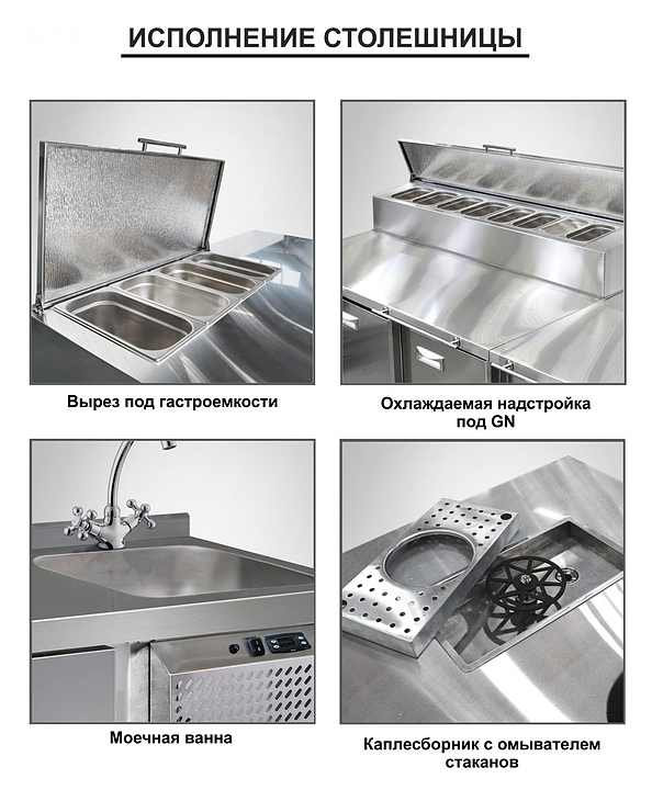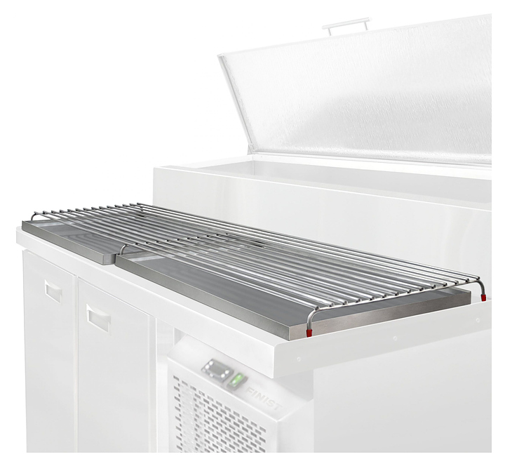 Холодильный стол Finist СХСпц-700-2 предназначен для хранения скоро портящихся полуфабрикатов из мяса, рыбы и других ингридиентов для приготовления пиццы на предприятиях общественного питания и торговли. Модель оснащена расположенным сбоку агрегатным отсеком, столешницей с коробом для установки 7 GN1/3 с крышкой, 2 холодильными камерами с распашными дверцами, устойчивыми ножками с подпятниками, кабелем питания с евровилкой и кнопочной панелью управления с цифровым дисплеем. Цельнозаливной корпус выполнен из высококачественной нержавеющей стали, задняя стенка - из оцинкованной стали. Гастроемкости в комплект поставки не входят и приобретаются отдельно. Особенности: