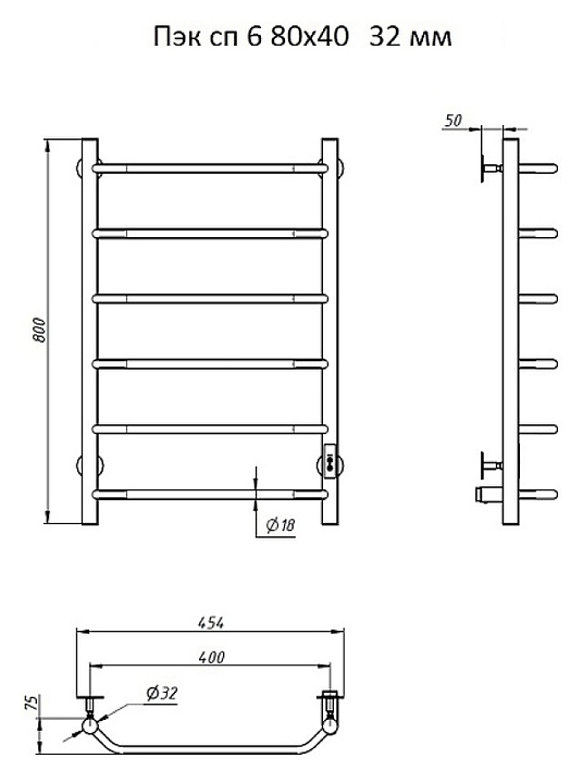 Полотенцесушитель электрический Тругор Пэк сп 6 80х40 см, хром