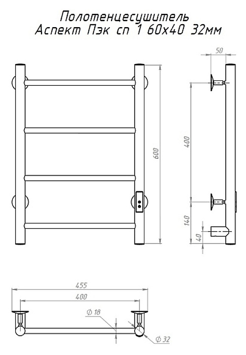 Полотенцесушитель электрический Тругор Аспект Пэк сп 1 60х40 см, хром