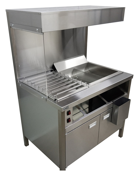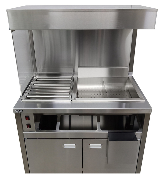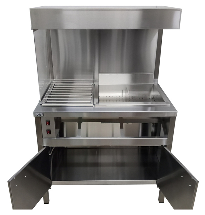 Станция ЦМИ СФ-1010 используется на предприятиях общественного питания и торговли для хранения и фасовки картофеля фри. Модель оснащена подсветкой, терморегулятором и съемным поддоном с решеткой. Изделие полностью выполнено из нержавеющей стали, нагревательный элемент - из керамики. Комплектация: