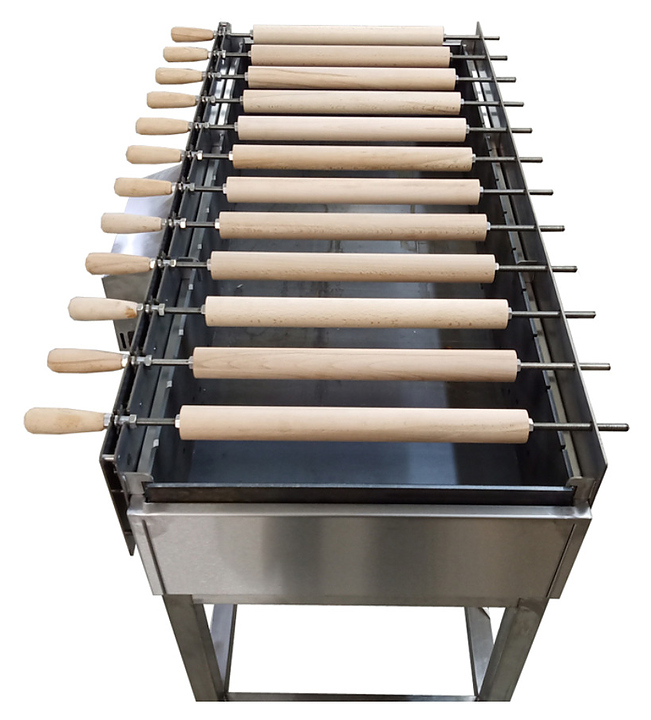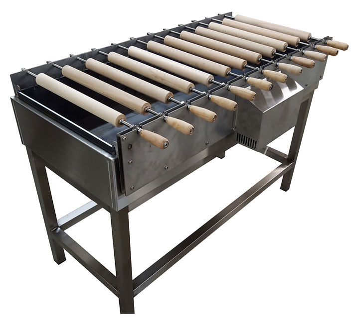 Мангал ЦМИ предназначен для приготовления ТРДЛО на предприятиях общественного питания и торговли. Модель лсгащена электроприводом. Чаша выполнена из черной стали, облицовка, подставка и навесные навесные панели - из нержавеющей стали AISI 304. В комплект поставки входят 12 шампуров с буковой вставкой. Дополнительные характеристики: