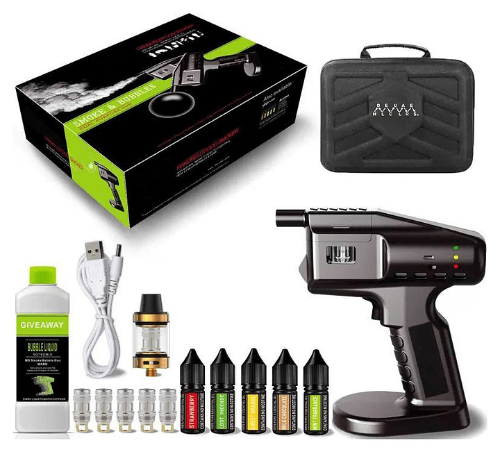Коктейльный пистолет InnoCook Blaster Kit используется в барах и предназначен для создания пузырей, наполненных ароматным цветным дымом. В комплект поставки входят пистолет, сумка, USB-кабель для зарядки, картридж, 5 сердцевин картриджа, 5 флаконов с жидкостями, бутыль с базовой жидкостью 300 мл и коробка. Дополнительные характеристики: