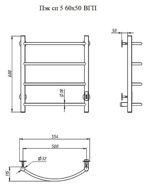 Полотенцесушитель электрический Тругор Пэк сп 5 60х50 см, графит