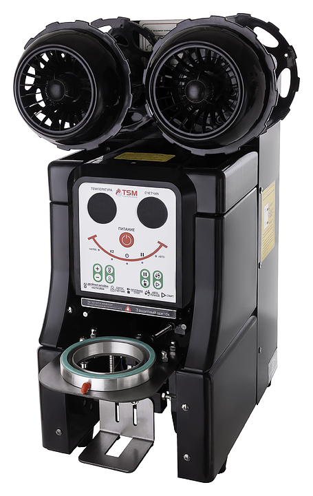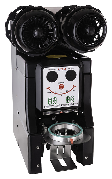 Автоматический запайщик TSM Q10-90/95 используется на предприятиях пищевой промышленности, общественного питания и торговли для герметичного запечатывания термосвариваемой пленкой круглых стаканов с горячими и холодными напитками, готовыми блюдами, полуфабрикатами, фруктами и другой пищевой продукцией. Модель оснащена выдвижной рабочей матрицей, панелью управления с мембранной клавиатурой, светодиодными лампами и цифровыми дисплеями индикации. Корпус выполнен из стали с антикоррозийным покрытием черного цвета, направляющие – из нейлона, ножи – из высококачественной японской стали. В комплект поставки входят 3 сменные матрицы различного диаметра. Особенности:
