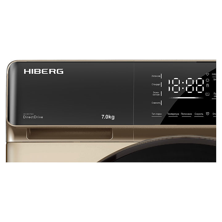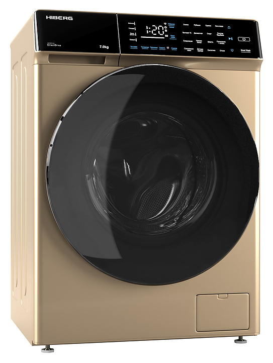 Стиральная машина Hiberg i-DDQ9 - 712 G используется в домашних условиях, а также небольших прачечных для стирки, полоскания и отжима белья, одежды и тканей. Модель оснащена фронтальным загрузочным люком, левосторонней дверью люка со смотровым окном, кабелем питания с вилкой, съемным лотком с 3 отсеками для моющих средств, сенсорной панелью управления с функциональными клавишами, светодиодными цифровым дисплеем и сигнальными индикаторами с символьными и текстовыми сегментами с белой подсветкой. Корпус выполнен из металла с антикоррозийным покрытием золотистого оттенка, крышка двери люка – из прозрачного стекла с черной широкой окантовкой, внешняя крышка двери люка – из стекла с полупрозрачной черной тонировкой и глянцевой окантовкой черного цвета, барабан – из высококачественной нержавеющей стали, верхние фронтальные панели с черной глянцевой поверхностью.
