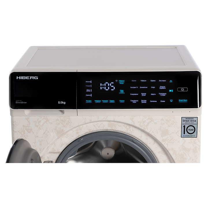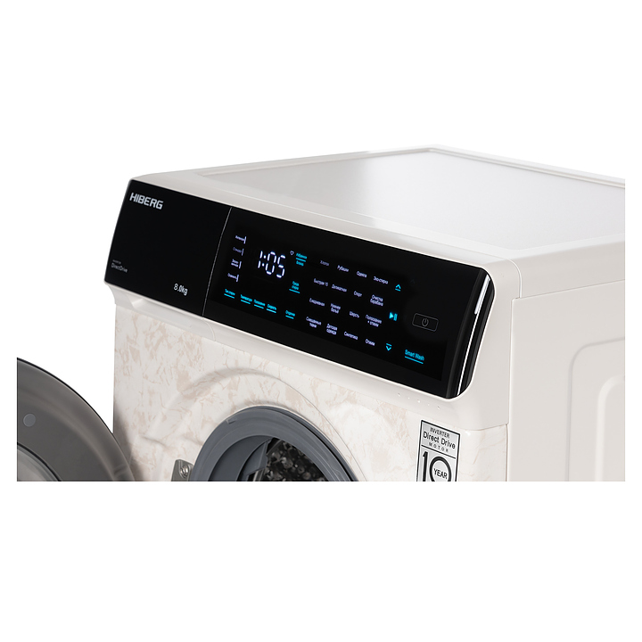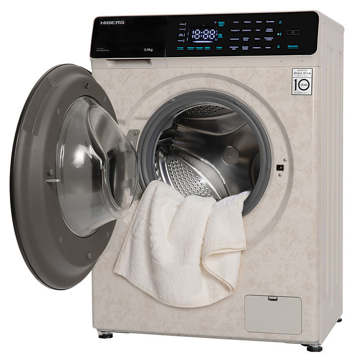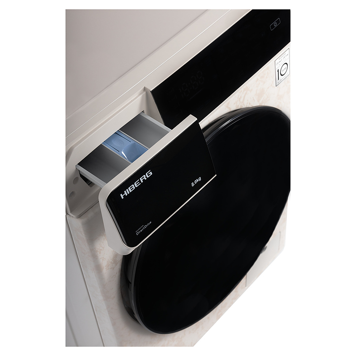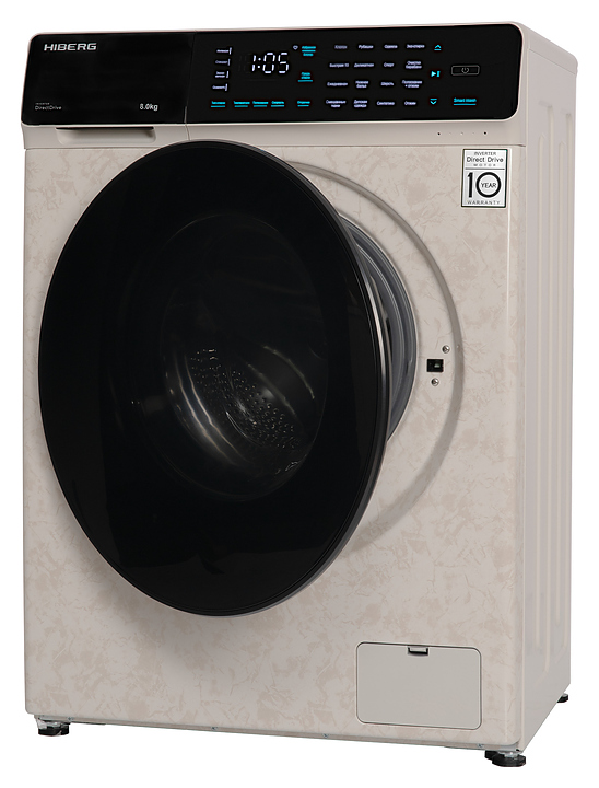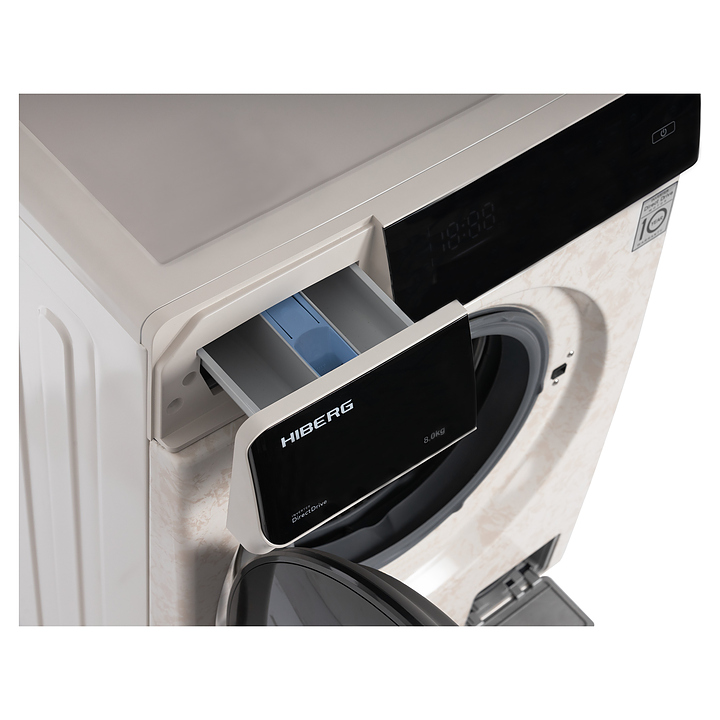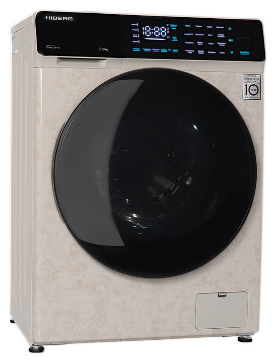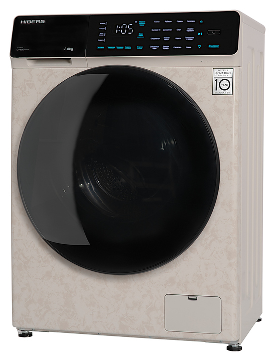 Стиральная машина Hiberg i-DDQ9 - 812 Ym используется в домашних условиях, а также небольших прачечных для стирки, полоскания и отжима белья, одежды и тканей. Модель оснащена фронтальным загрузочным люком, левосторонней дверью люка со смотровым окном, кабелем питания с вилкой, съемным лотком с 3 отсеками для моющих средств, сенсорной панелью управления с функциональными клавишами, светодиодными цифровым дисплеем и сигнальными индикаторами с символьными и текстовыми сегментами с белой подсветкой. Корпус выполнен из металла с антикоррозийным покрытием оттенка бежевый мрамор, крышка двери люка – из прозрачного стекла с черной широкой окантовкой, внешняя крышка двери люка – из стекла с полупрозрачной черной тонировкой и глянцевой окантовкой черного цвета, барабан – из высококачественной нержавеющей стали, верхние фронтальные панели с черной глянцевой поверхностью.