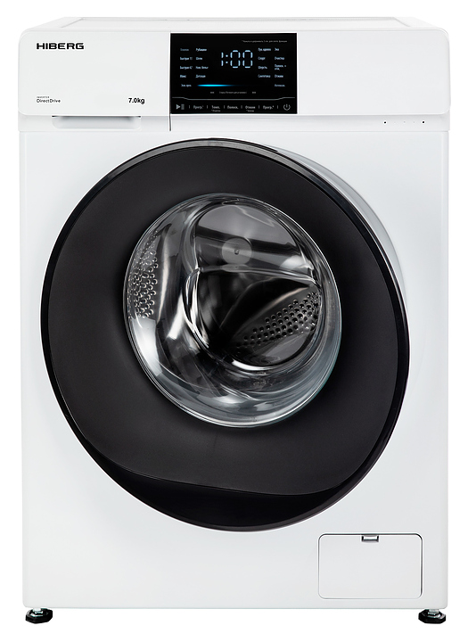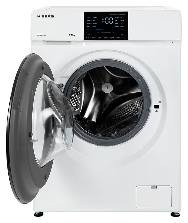 Стиральная машина Hiberg i-DDQ6 - 712 W используется в домашних условиях, а также небольших прачечных для стирки, полоскания и отжима белья, одежды и тканей. Модель оснащена фронтальным загрузочным люком, левосторонней дверью люка со смотровым окном, кабелем питания с вилкой, съемным лотком с 3 отсеками для моющих средств, сенсорной панелью управления с функциональными клавишами, светодиодными цифровым дисплеем и сигнальными индикаторами с символьными и текстовыми сегментами с белой подсветкой. Корпус выполнен из металла с антикоррозийным покрытием белого цвета, крышка двери люка – из прозрачного стекла с черной широкой окантовкой, внешняя крышка двери люка – из прозрачного стекла с глянцевой окантовкой черного цвета, барабан – из высококачественной нержавеющей стали, панель управления с черной глянцевой поверхностью.