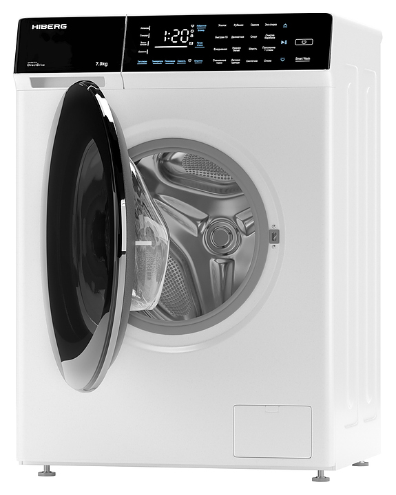 Стиральная машина Hiberg i-DDQ9 - 712 W используется в домашних условиях, а также небольших прачечных для стирки, полоскания и отжима белья, одежды и тканей. Модель оснащена фронтальным загрузочным люком, левосторонней дверью люка со смотровым окном, кабелем питания с вилкой, съемным лотком с 3 отсеками для моющих средств, сенсорной панелью управления с функциональными клавишами, светодиодными цифровым дисплеем и сигнальными индикаторами с символьными и текстовыми сегментами с белой подсветкой. Корпус выполнен из металла с антикоррозийным покрытием белого цвета, крышка двери люка – из прозрачного стекла с черной широкой окантовкой, внешняя крышка двери люка – из стекла с полупрозрачной черной тонировкой и глянцевой окантовкой черного цвета, барабан – из высококачественной нержавеющей стали, верхние фронтальные панели с черной глянцевой поверхностью.