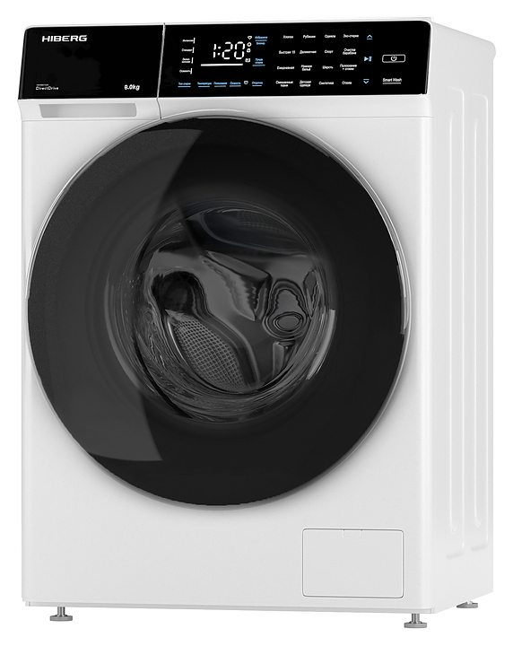 Стиральная машина Hiberg i-DDQ9 - 812 W используется в домашних условиях, а также небольших прачечных для стирки, полоскания и отжима белья, одежды и тканей. Модель оснащена фронтальным загрузочным люком, левосторонней дверью люка со смотровым окном, кабелем питания с вилкой, съемным лотком с 3 отсеками для моющих средств, сенсорной панелью управления с функциональными клавишами, светодиодными цифровым дисплеем и сигнальными индикаторами с символьными и текстовыми сегментами с белой подсветкой. Корпус выполнен из металла с антикоррозийным покрытием белого цвета, крышка двери люка – из прозрачного стекла с черной широкой окантовкой, внешняя крышка двери люка – из стекла с полупрозрачной черной тонировкой и глянцевой окантовкой черного цвета, барабан – из высококачественной нержавеющей стали, верхние фронтальные панели с черной глянцевой поверхностью.