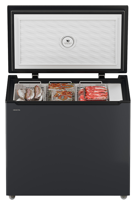 Морозильный ларь Hiberg PF 25 NFXd предназначен для охлаждения, заморозки, кратковременного и длительного хранения пищевых продуктов и напитков в гостиничных комплексах, офисах и домашних условиях. Модель оснащена горизонтально ориентированной рабочей камерой с откидной дверью сверху, кабелем питания с вилкой, расположенной на внешней стороне двери электронной панелью управления с функциональными клавишами, светодиодными индикаторами и цифровым дисплеем. Корпус выполнен из металла с антикоррозийным покрытием темно-серого цвета, поверхность крышки – из прочного закаленного стекла, внутренняя облицовка камеры – из белого пластика, корзины – из металла с белым антикоррозийным покрытием. В комплект поставки входят 3 съемные решетчатые корзины, инструкция по эксплуатации, гарантийный талон и заводская упаковка. Особенности: