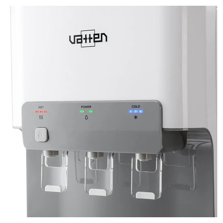 Напольный кулер Vatten L07WK предназначен для дозированной подачи, нагрева и охлаждения питьевой воды на предприятиях общественного питания, в офисах, гостиницах, различных учреждениях и домашних условиях. Модель оснащена кабелем питания с вилкой, 3 кранами, панелью управления с функциональными клавишами и светодиодными лампами индикации. Корпус выполнен из высококачественного пластика белого цвета. Особенности: