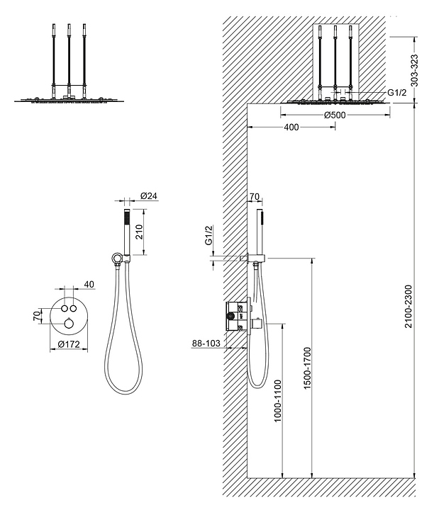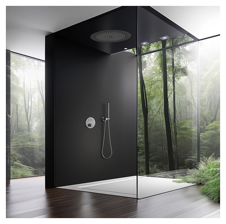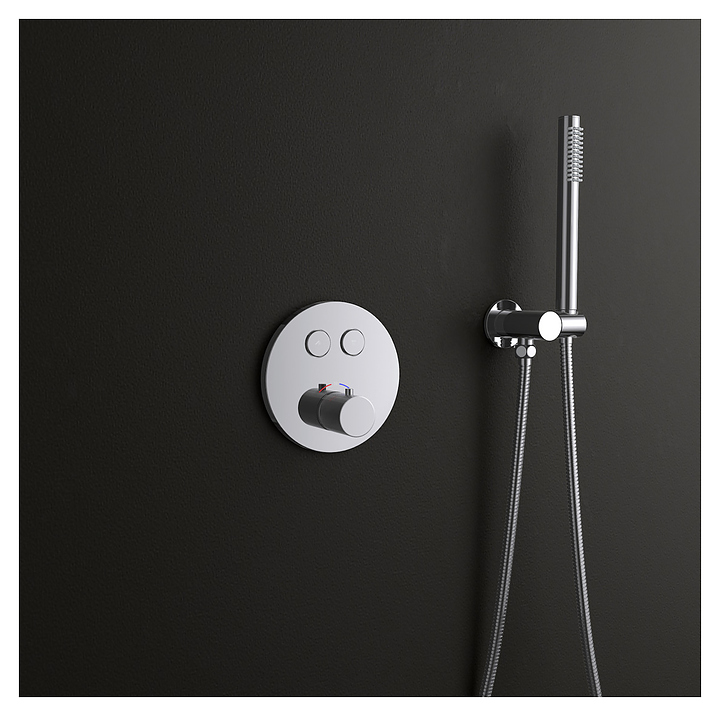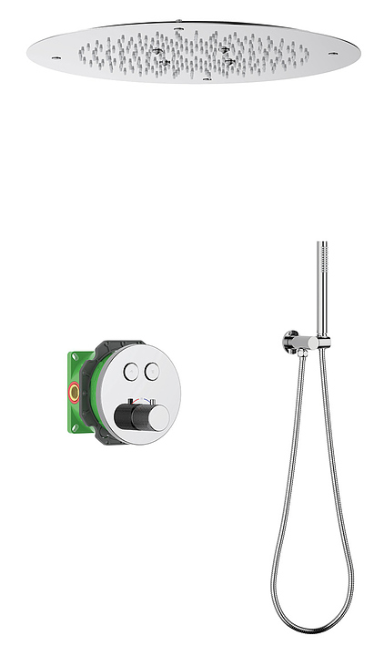 Душевой комплект TIMO Saona SX-2370/00SM предназначен для использования в ванных помещениях. Модель оснащена круглым верхним душем и ручной лейкой с душевым шлангом, а также термостатическим картриджем, обеспечивающим поддержание необходимой температуры в независимости от давления воды. Изделие выполнено из высококачественной латуни, отличающейся прочностью, долговечностью и устойчивостью к перепадам температур. В комплект поставки входят смеситель скрытого монтажа, верхний тропический душ, ручная лейка и душевой шланг, держатель ручной лейки, декоративная накладка смесителя, ручка управления термостатом. Особенности: