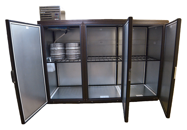 Кегератор Berk 24 кега (модель №16) предназначен для хранения и розлива кегов (бочек) с разливным пивом и другими напитками на предприятиях общественного питания и торговли. Модель оснащена контроллером управления, автоматической принудительной оттайкой и хладагентом R134. Оборудование будет использоваться максимально эффективно, если все кеги в нем будут подключены к розливу, а кеги, составляющие товарный запас, будут храниться в отдельном холодильнике. Холодильная камера должна эксплуатироваться в закрытом вентилируемом помещении при температуре окружающего воздуха от 12 до 28 °С и относительной влажности не более 80%. В комплект поставки входит 3 дополнительных наружных планки для крепления кранов Особенности: