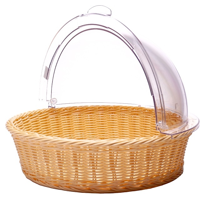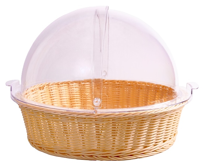 Корзина плетеная для хлеба MGprof 73339 d=40 см h=10 см (полиротанг) круглая бежевая с крышкой Roll-Top (пластик)