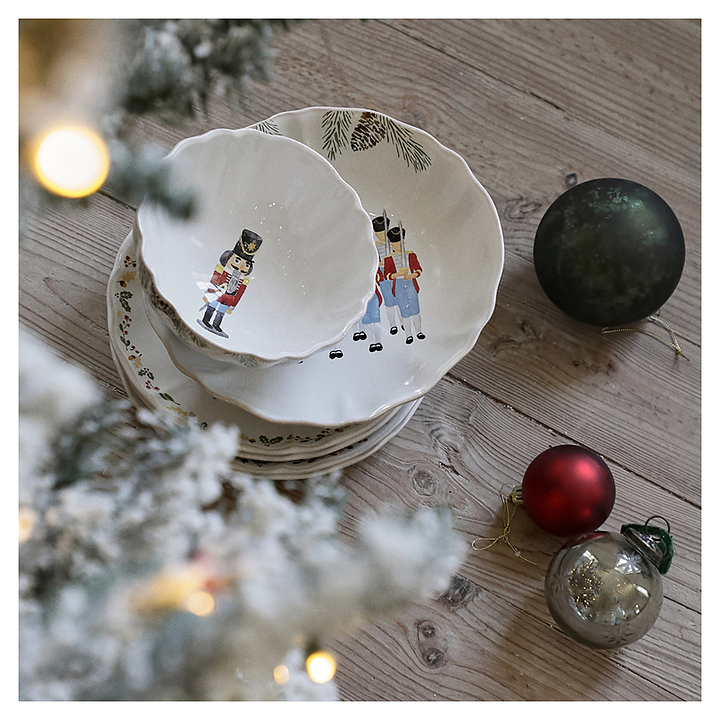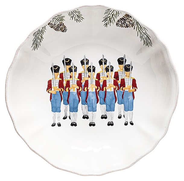 Салатник Casafina TP231-WHI(TP231-00821Q) коллекции The Nutcracker используется в кафе, ресторанах, на других предприятиях общественного питания и в домашних условиях для подачи салатов. Коллекция разработана для детей и отличается уникальным декором, вдохновленным рождественской сказкой Гофмана «Щелкунчик и Мышиный король». Емкость круглой формы оснащена плавно расширенным рельефным бортом с волнистой кромкой. Изделие выполнено из высококачественной керамики с белой поверхностью, рисунком с солдатиками и хвойными ветвями на внутренней стороне чаши. Особенности:
