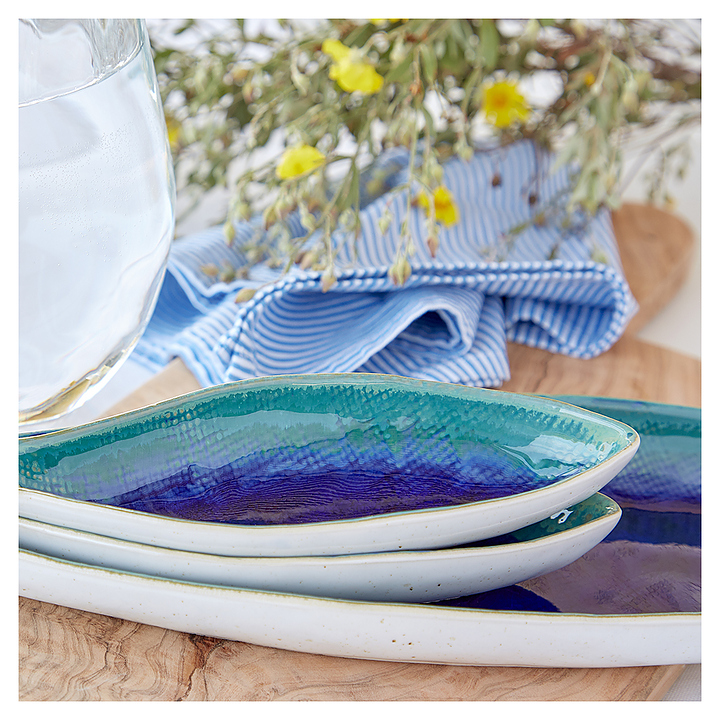 Тарелка Casafina DO217-BLU(ERA431-01818Q) коллекции Dori используется в кафе, ресторанах, на других предприятиях общественного питания и в домашних условиях для подачи различных блюд. Емкость стилизована под рыбку продолговатой формы и оснащена плавно расширенным к кромке бортом. Изделие выполнено из высококачественной керамики с поверхностью в сочетании насыщенных синих и голубых тонов. Цена указана за 1 шт. Особенности: