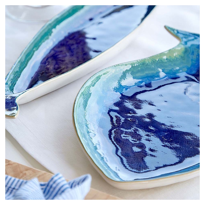 Салатник Casafina DO230-BLU(ERS301-01818Q) коллекции Dori используется в кафе, ресторанах, на других предприятиях общественного питания и в домашних условиях для подачи салатов. Емкость стилизована под рыбку продолговатой формы и оснащена плавно расширенным к кромке бортом. Изделие выполнено из высококачественной керамики с внутренней поверхностью чаши в сочетании насыщенных синих и голубых тонов и внешней стороной бортов белого цвета. Особенности: