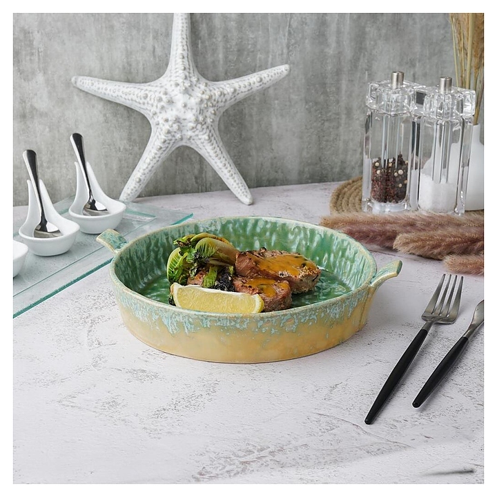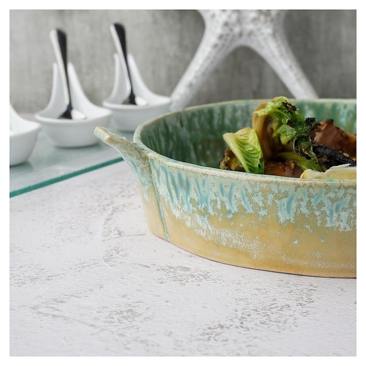 Блюдо для подачи P.L. Proff Cuisine Green Frutti di Mare P.L. [1] B23292026-2401C используется на предприятиях общественного питания и в домашних условиях. Предназначено для подачи широкого спектра блюд. Изделие выполнено из керамики, покрытой реактивной глазурью. Особенности: