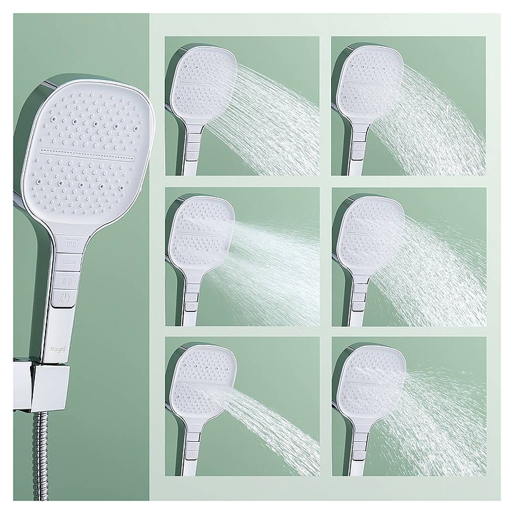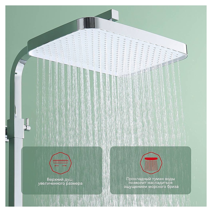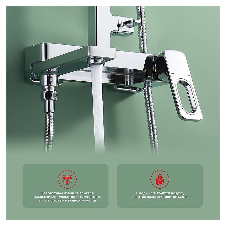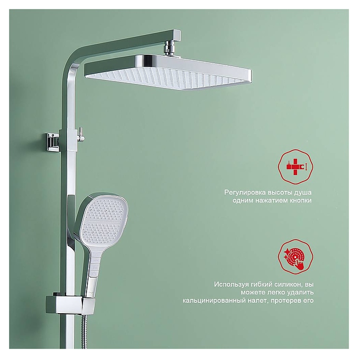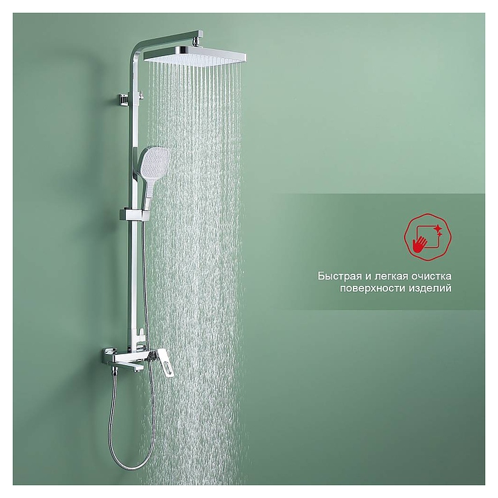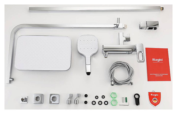 Душевая система Raglo R51.24 предназначена для подачи горячей и холодной воды в ванных помещениях. Модель оснащена регулируемой по высоте душевой штангой, прямоугольным верхним душем и квадратной ручной лейкой. Керамический картридж обеспечивает плавный ход рычага смесителя, контроль и точность при выборе напора и температуры воды. Излив оснащен аэратором, который создает мягкую струю без брызг. Изделие выполнено из высококачественной латуни, отличающейся прочностью, долговечностью и устойчивостью к перепадам температур, шланг - из металла, аэратор - из силикона. В комплект поставки входят верхний душ, душевая штанга с держателем лейки, ручной душ, смеситель и шланг. Особенности: