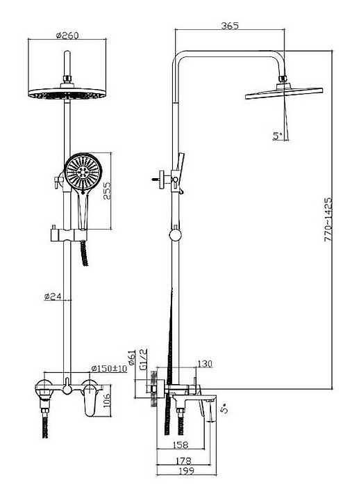 Душевая система Raglo R31.24.09 предназначена для подачи горячей и холодной воды в ванных помещениях. Модель оснащена регулируемой по высоте душевой штангой, круглыми верхним душем и ручной лейкой. Керамический картридж обеспечивает плавный ход рычага смесителя, контроль и точность при выборе напора и температуры воды. Излив оснащен аэратором, который создает мягкую струю без брызг. Изделие выполнено из высококачественной латуни, отличающейся прочностью, долговечностью и устойчивостью к перепадам температур, шланг - из ПВХ. В комплект поставки входят верхний душ, душевая штанга с держателем лейки, ручной душ, смеситель и шланг. Особенности: