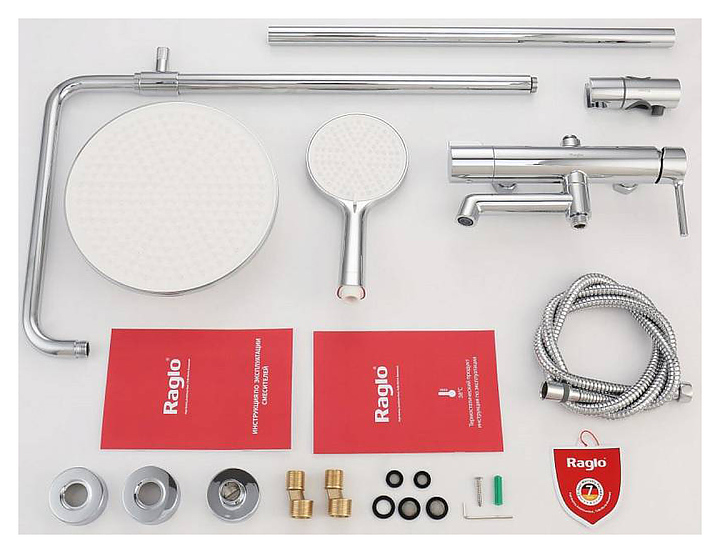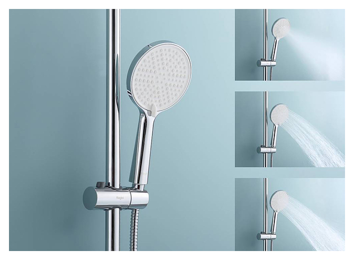 Душевая система Raglo R20.24 предназначена для подачи горячей и холодной воды в ванных помещениях. Модель оснащена регулируемой по высоте душевой штангой, круглыми верхним душем и ручной лейкой. Керамический картридж обеспечивает плавный ход рычага смесителя, контроль и точность при выборе напора и температуры воды. Излив оснащен аэратором, который создает мягкую струю без брызг. Изделие выполнено из высококачественной латуни, отличающейся прочностью, долговечностью и устойчивостью к перепадам температур, шланг - из металла, аэратор - из силикона. В комплект поставки входят верхний душ, душевая штанга с держателем лейки, ручной душ, смеситель и шланг. Особенности: